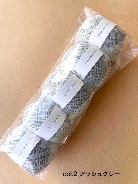 リネンはサラッとした肌触りを、ウールは膨らみとコシ感を、アルパカは滑らかさと編み地の柔らかさをもたらします。