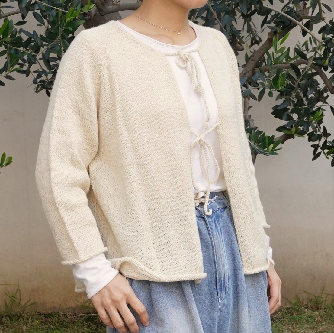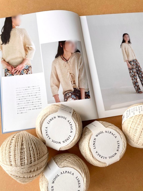 リネンウールアルパカで編む7分袖のカーディガン。