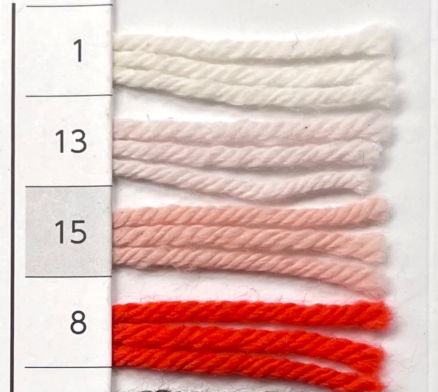 単色部分はガーター編みで、ボーダー部分は2段毎に配色をしながら透かし模様で編みます。