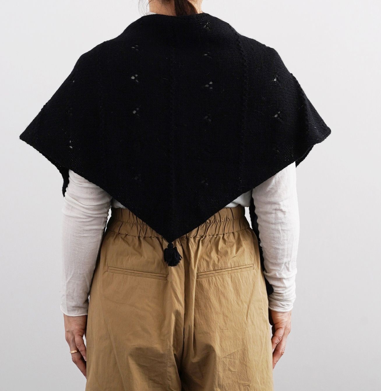 三角の頂点からは片側を減目をしながら編むシンプルで編みやすいデザインです。