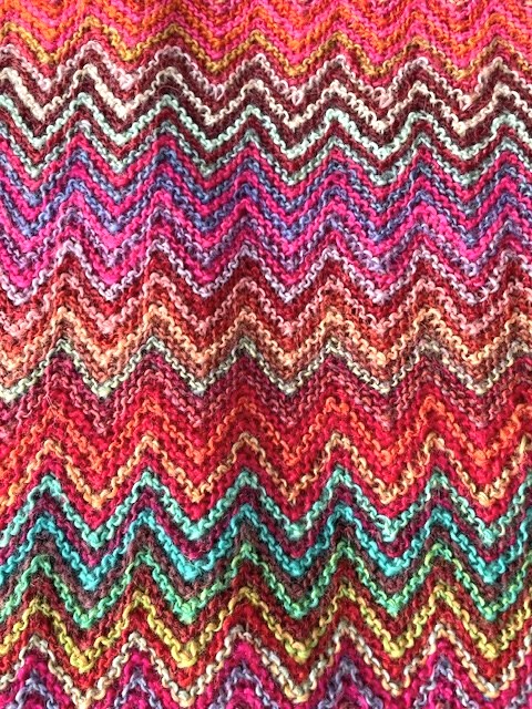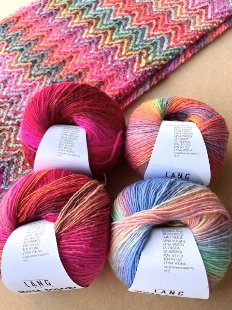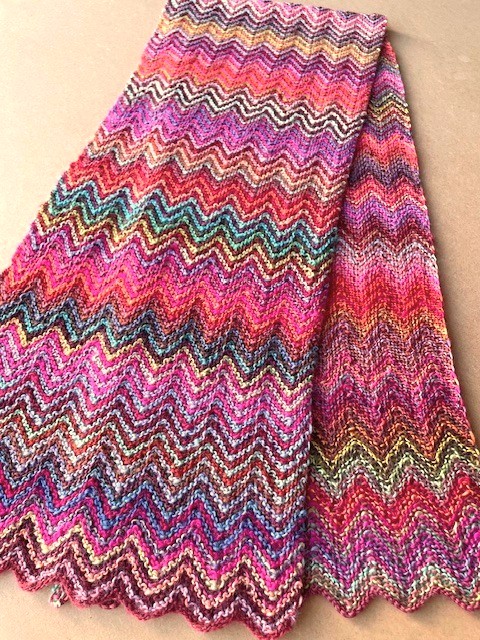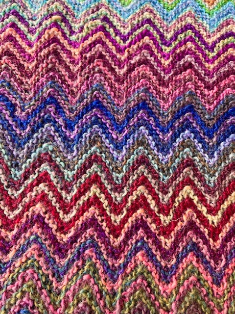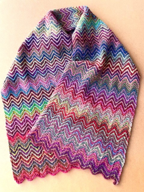 カラフルな可愛いジグザグ模様をガーター編みで表現しています。